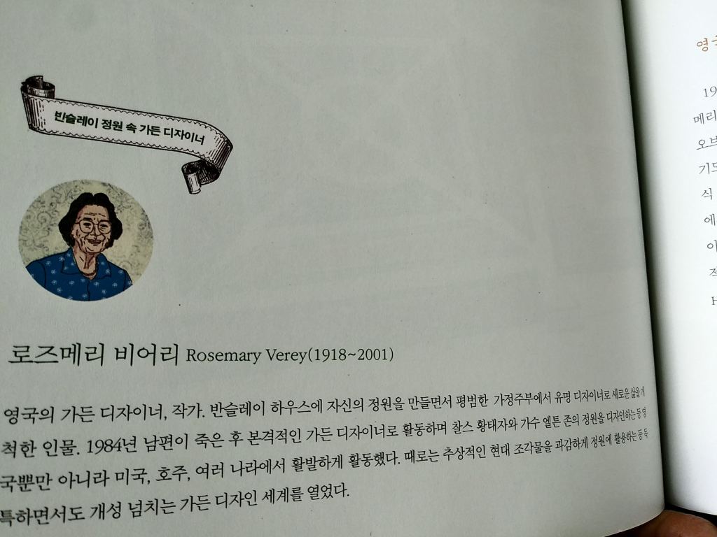 로즈메리 비어리. 영국의 가든 디자이나, 작가, 반슬레이 하우스에 자신의 정원을 만들면서 평범한 가정주부에서 유명 디자이너로 새로운 삶을 개척한 인물.