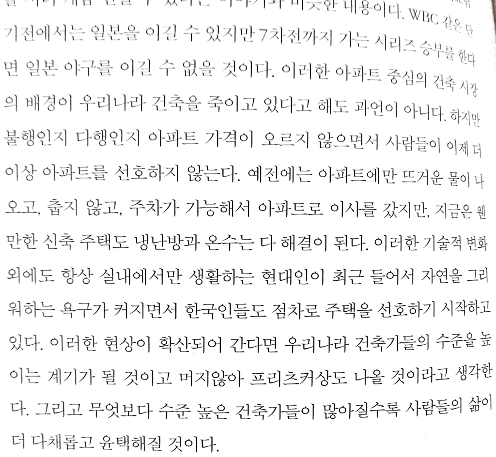 아시다시피 우리의 도시는 유럽의 유서 깊은 오래된 도시에 비해서 건축적으로 아름답지 못하다…가장 큰 이유는 오래된 건축물이 없어서다.