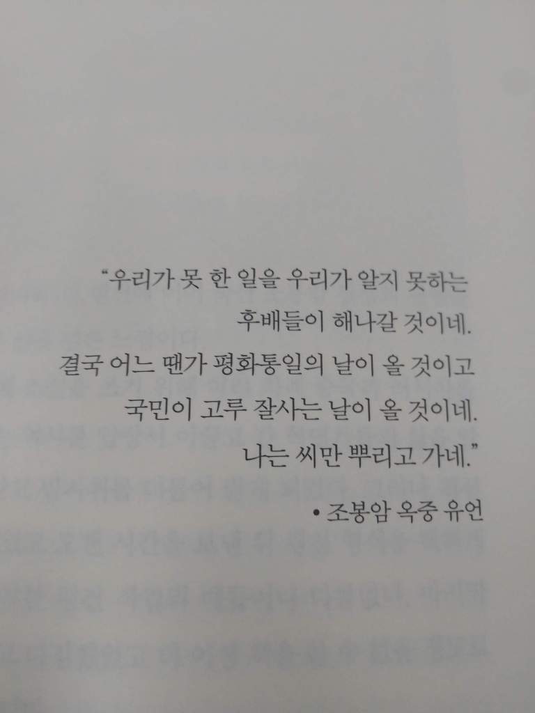 “죽산 선생님의 정치적 이상이 너무 앞서 간 걸까요?” “그런 셈이지. 개혁을 부르짖으며 앞서 가는 사람은 순교자처럼 죽게 마련이지…”