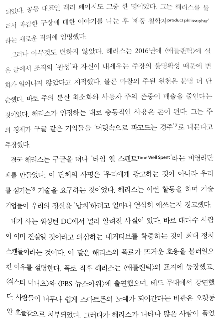 이런 정신없는 활동의 문제는 그 세부적인 측면이 아니라 갈수록 통제에서 벗어난다는 사실에 있다…온라인 도구들은 사람들을 중독시키는 법을 알고 있다.