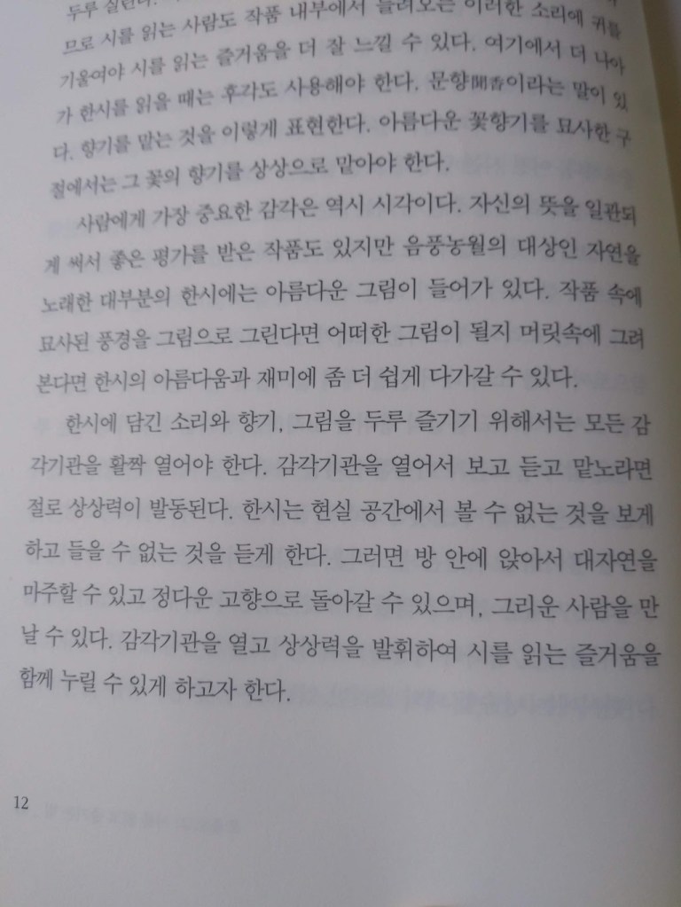 한시에 담긴 소리와 향기, 그림을 두루 즐기기 위해서는 모든 감각기관을 활짝 열어야 한다. 감각기관을 열어서 보고 듣고 맡노라면 절로 상상력이 발동된다.