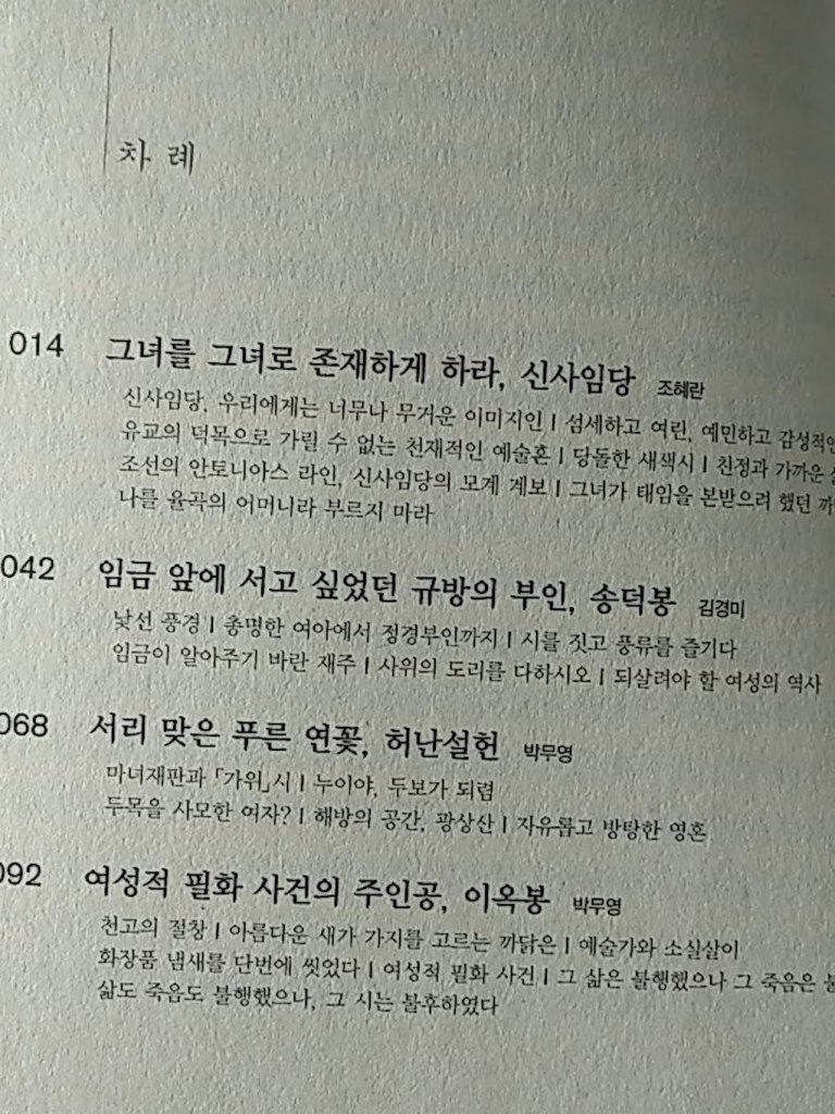 우리가 불러내고자 하는 것은 ‘위대한 여성들’이 아니다. 그것은 구체적인 숨결을 죽이고 그 당사자들을 추상화시킨다. 우리는 우리와 똑같은 여성들이 각자의 삶을 최선을 다해 견디고 살아가고 장악했던 다양한 방식들을 드러내고 싶다. 여기 불러놓은 열네 명의 여성들은 비슷한 조건, 조선 시대의 여성으로 살았다. 그러나 모두 다른 방법으로 살았다. 이 글들은 우리 각자가 이 여성 선배들 각자와 만나고 싸우고 화해하고 반하고 연애한 기록들이다. 억압 속에서도 사람다운 품위를 잃지 않았던 그들의 숨소리를 듣는 것은 우리의 삶을 풍요롭게 할 것이다.