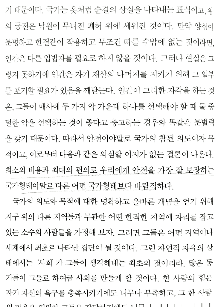 어떤 저술가들은 사회와 국가를 매우 혼동하는 탓에 이 둘을 거의 또는 전혀 구별하지 못한다. 그러나 이 둘은 서로 다를 뿐 아니라 그 기원조차 상이하다. 사회는 우리의 필요에 의해 만들어지지만, 국가는 우리의 사악함 때문에 만들어진다.