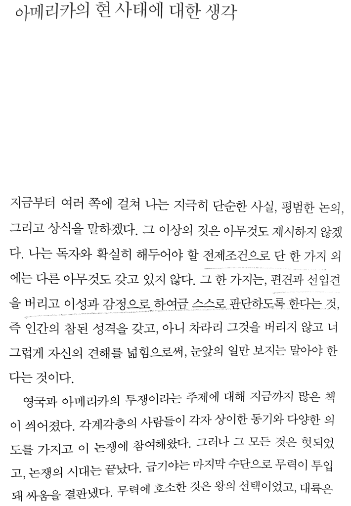 하늘 아래 이보다 더 큰 일은 없었다…그것은 하루, 한 해, 한 세대에 관한 것이 아니라 후손까지 직접적으로 그 싸움에 관련돼 있고, 현재의 진행 결과에 따라 이 세상 마지막까지도 다소간 영향을 미칠 것이다. #아메리카 #독립 #영국