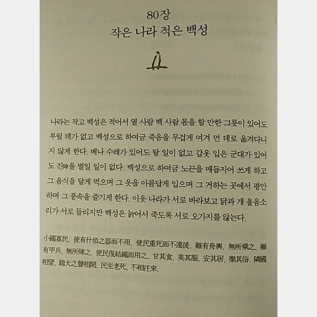마지막 문장은 노자의 유토피아를 매우 함축적으로 그리고 시적으로 묘사한 느낌이 듭니다.