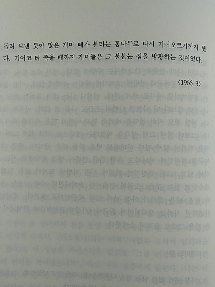 필경 나도 누구를 지식인이 아니라고 욕할 만한 권한이 점점 희박해져 가는 처지에 있고, 그런 절망적인 처지에 이길 가망이 도저히 없는 도전을 계속하고 있는 것은, 소련의 현대시인 솔제니친의 시에 나오는 개미와 같은 낡은 생리가 아직 남아 있기 때문인지도 모른다.
