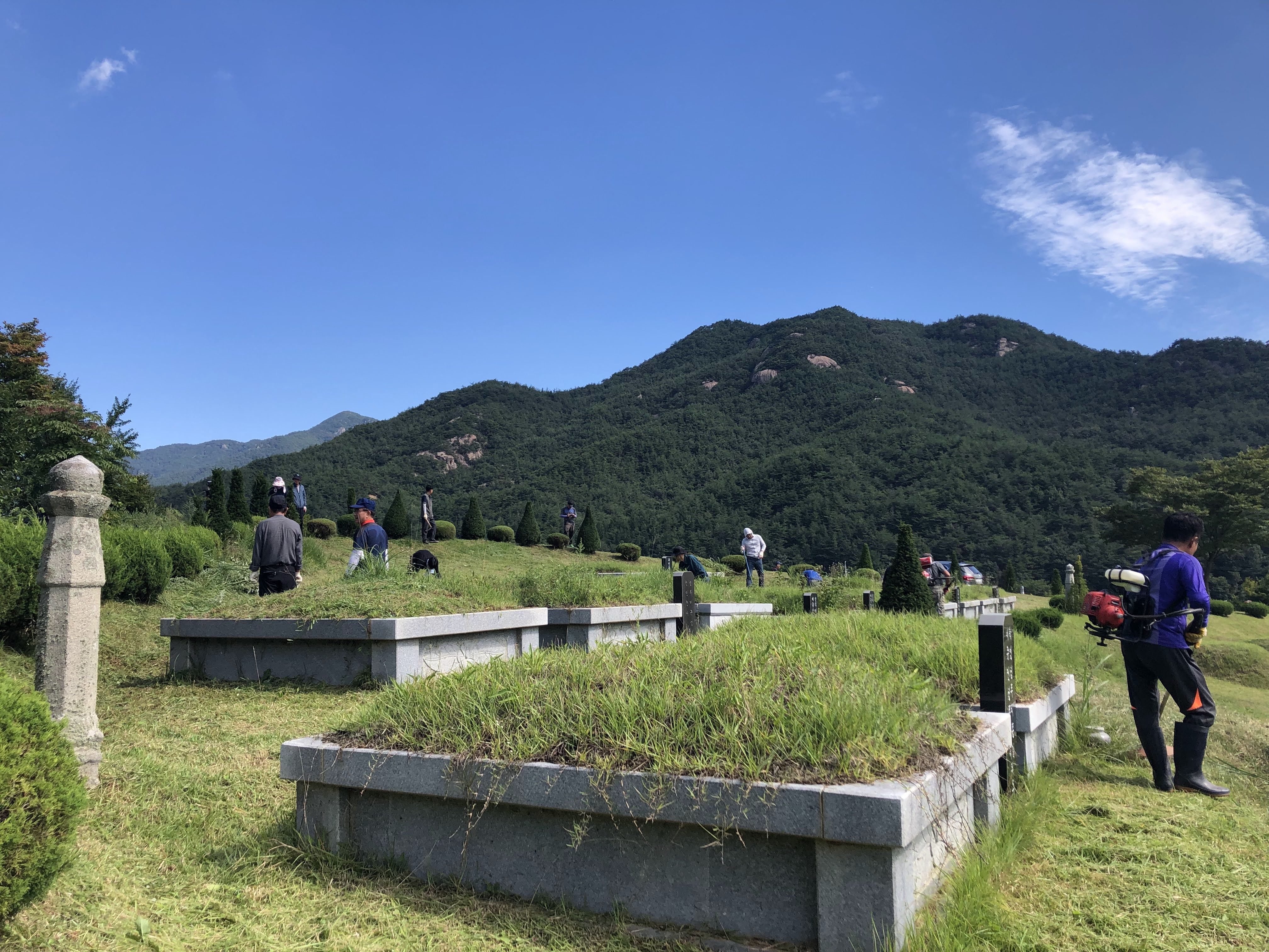 하지만 추석맞이 문중 가족 벌초 작업으로 요란한 예초기 소음이 지나간 자리엔 한 풀 꺽인 초록빛 풍경이 차분한 분위기로 모습을 바꿉니다.