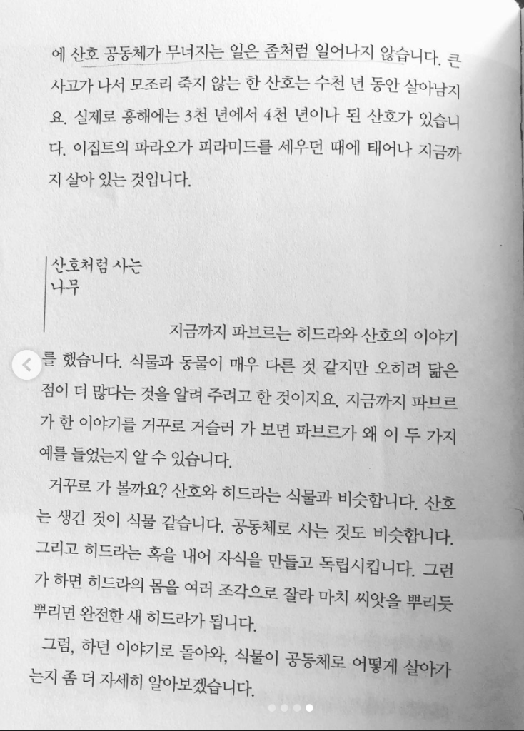 큰 사고가 나서 모조리 죽지 않는 한 산호는 수천 년 동안 살아남지요. 실제로 홍해에는 3천 년에서 4천 년이나 된 산호가 있습니다. 이집트의 파라오가 피라미드를 세우던 때에 태어나 지금까지 살아 있는 것입니다.