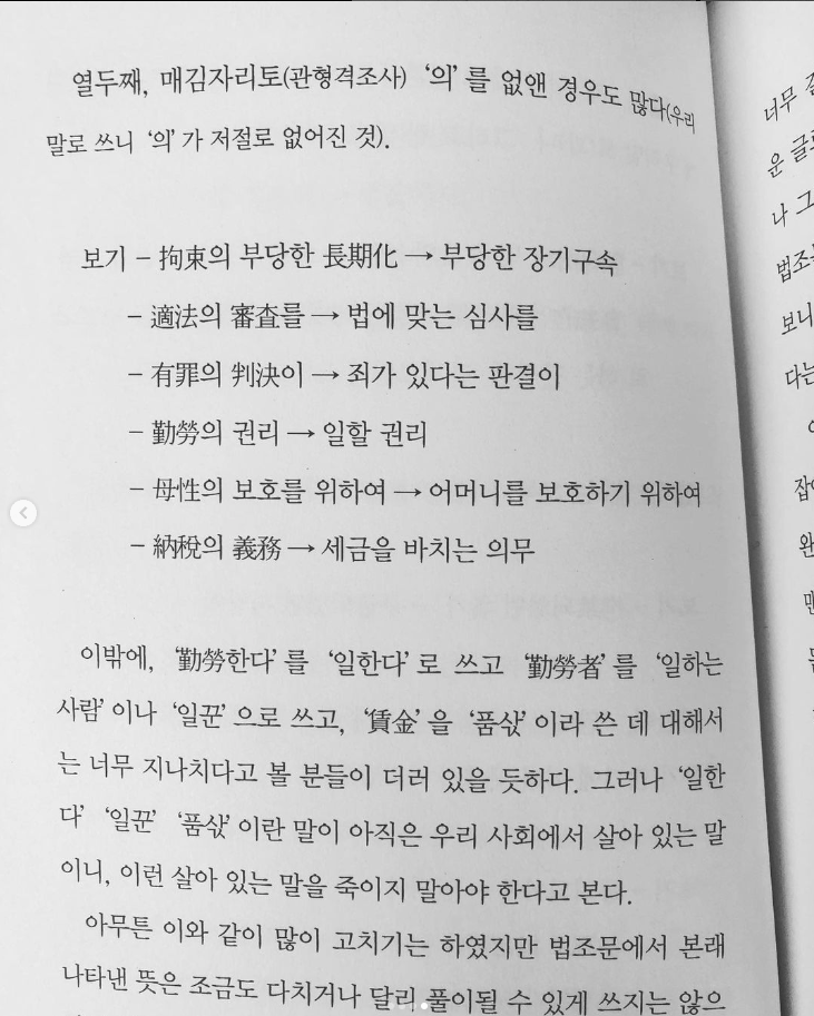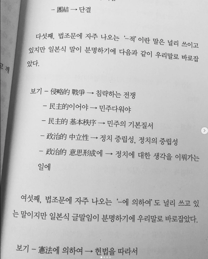 다섯째, 법조문에 자주 나오는 ‘-적’이란 말은 널리 쓰이고 있지만 일본식 말이 분명하기에…