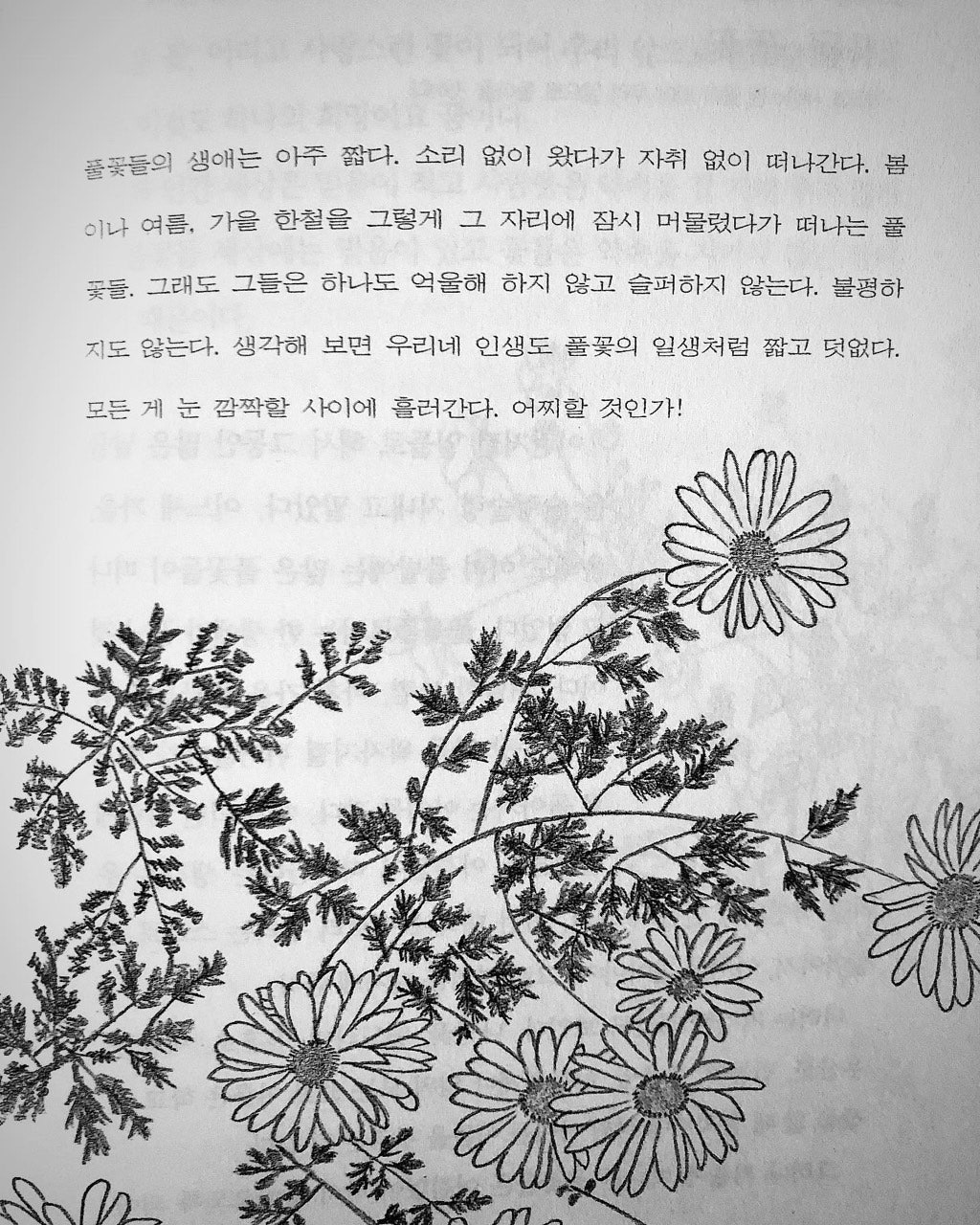풀꽃들의 생애는 아주 짧다. 소리 없이 왔다가 자취 없이 떠나간다. 봄이나 여름, 가을 한철을 그렇게 그 자리에 잠시 머물렀다가 떠나는 풀꽃들. 그래도 그들은 하나도 억울해 하지 않고 슬퍼하지 않는다. 불평도 하지 않는다. 생각해 보면 우리네 인생도 풀꽃의 일생처럼 짧고 덧없다. 모든 게 눈 깜짝할 사이에 흘러간다. 어찌할 것인가!