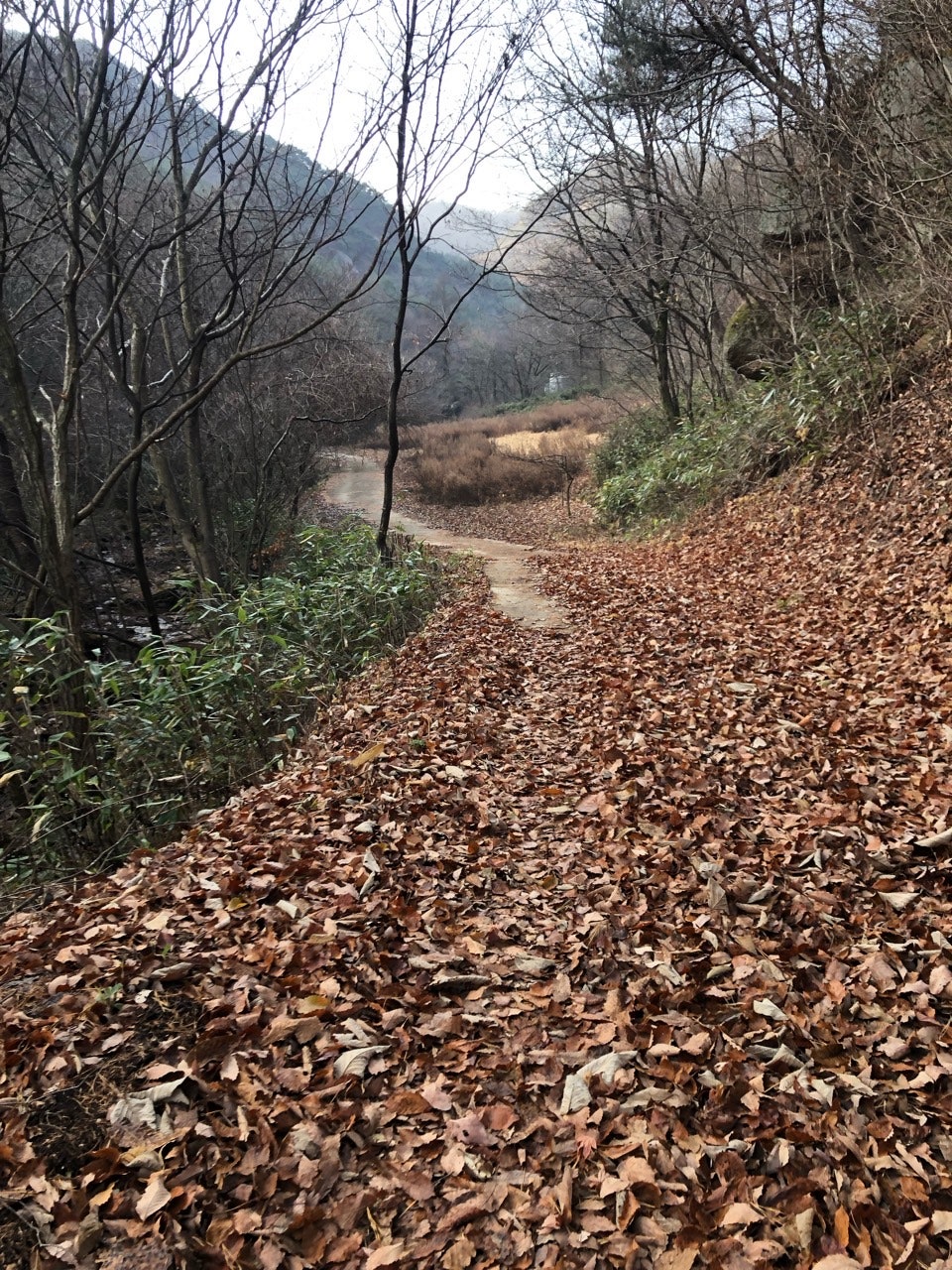 하지만 낙엽이 잔뜩 쌓인 우지내골 골짜기 입구엔 아직도 늦가을에 머물고 있는 듯 싶네요.