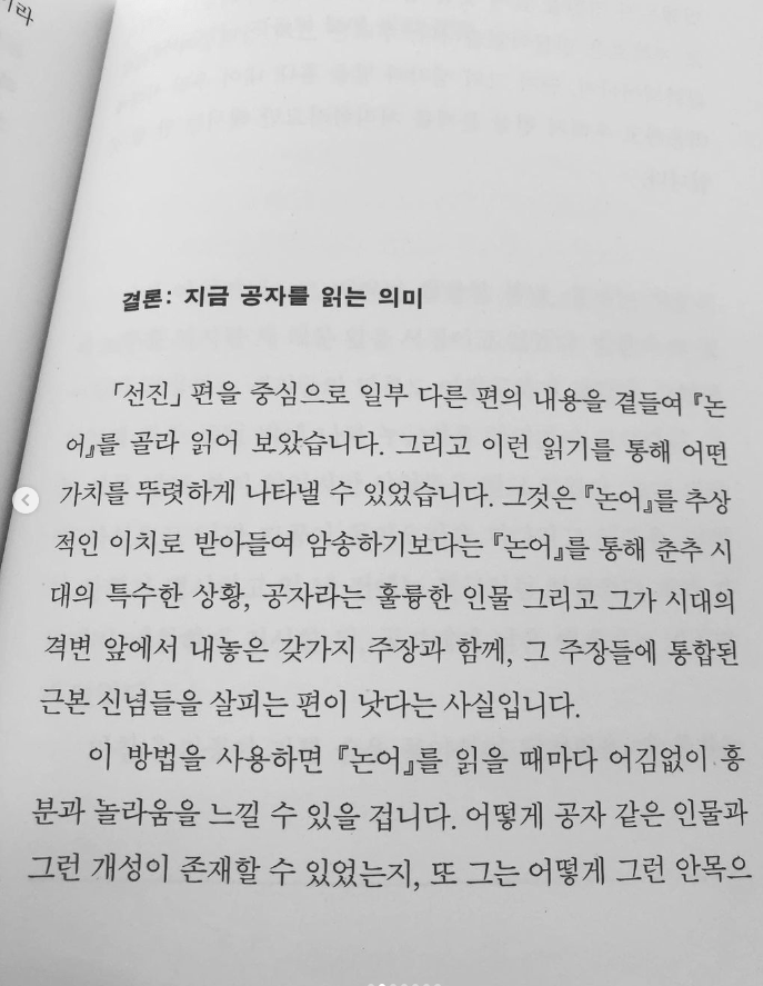 그 말들을 완벽하게 정리된 진리로 받아들여 줄줄이 외우고 실행하기보다는 그 말들의 진면모를 복원함으로써 단편적이지만 진실하고, 또 단편적이어서 오히려 진실한 이 기록에서 2천 년 전에 살았던 한 훌륭한 인물을 관찰하는 편이 낫습니다…이런 방식으로 <논어>를 읽는 것은 전통적인 독법보다 힘들지만 재미있습니다. 힘든 이유는 독서 과정에서 공자를 인간으로 복원하고 이해해야 하기 때문입니다. 단지 수동적으로 그의 말을 받아들이기만 해서는 안 됩니다. #인간공자 #인간공자를읽다