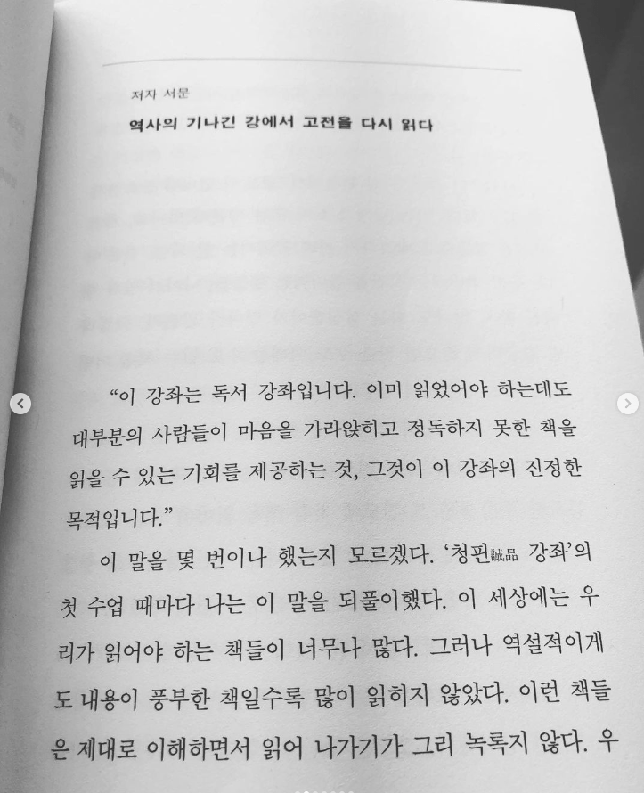 “이 강좌는 독서 강좌입니다. 이미 읽었어야 하는데도 대부분의 사람들이 마음을 가라앉히고 정독하지 못한 책을 읽을 수 있는 기회를 제공하는 것, 그것이 이 강좌의 진정한 목적입니다.”