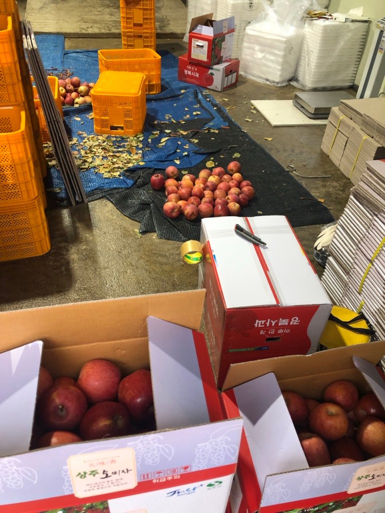 얼마전 너무 싼 값에 건내준 ‘꿀맛’ 감홍사과를 다 먹어가다보니, 수확철을 맞은 부사도 찾아오게 됩니다. 바쁜 일손은 직접 못 거들어주지만 구슬땀 수확에 조금이나마 보탬이 되고 맛있는 사과까지 덤으로 먹을 수 있는 일석이조의 직거래로 사과를 얻어갑니다. 다만, 너무나 싼 판매가격이 내심 마음에 걸릴지 않을 수 없습니다.